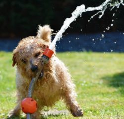 Now with the dogs, some breeds are better suited than others. While dedicated cold climate breeds with thick fluffy coats suffer a lot in the heat, desert breeds may still be happy to run and roam. Short nosed breeds have no efficient cooling system, so they are at the highest risk of overheating and need the most careful management through summer.